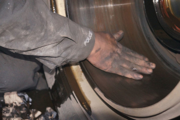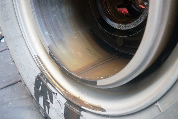 A blue discoloration on the inner circumferential working surface indicates that the brake drum and brake assembly have likely suffered damage or deformation. Bluing confirms that extremely high temperatures were generated during operation. Relevant components must be carefully inspected and analyzed, with all failed parts thoroughly replaced.